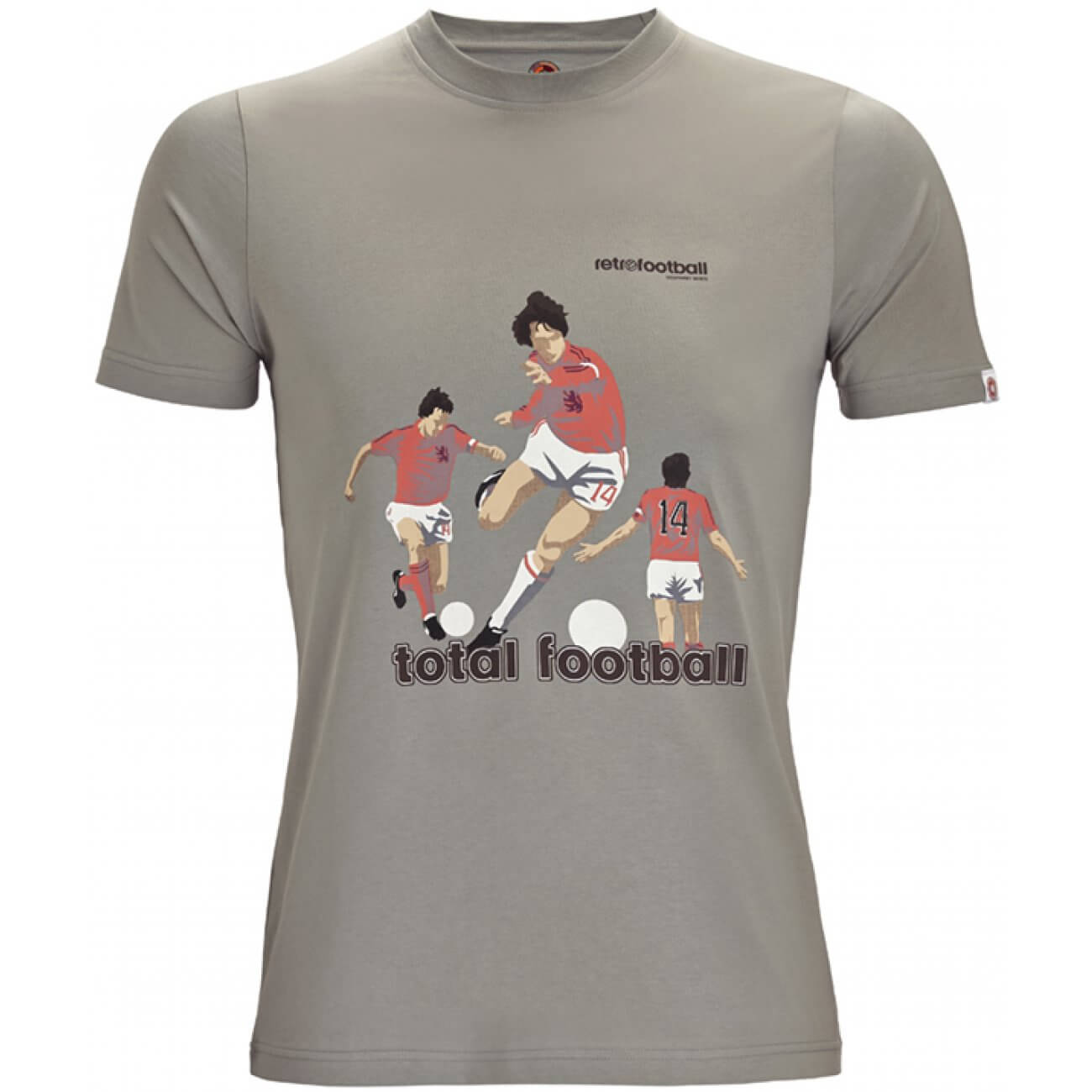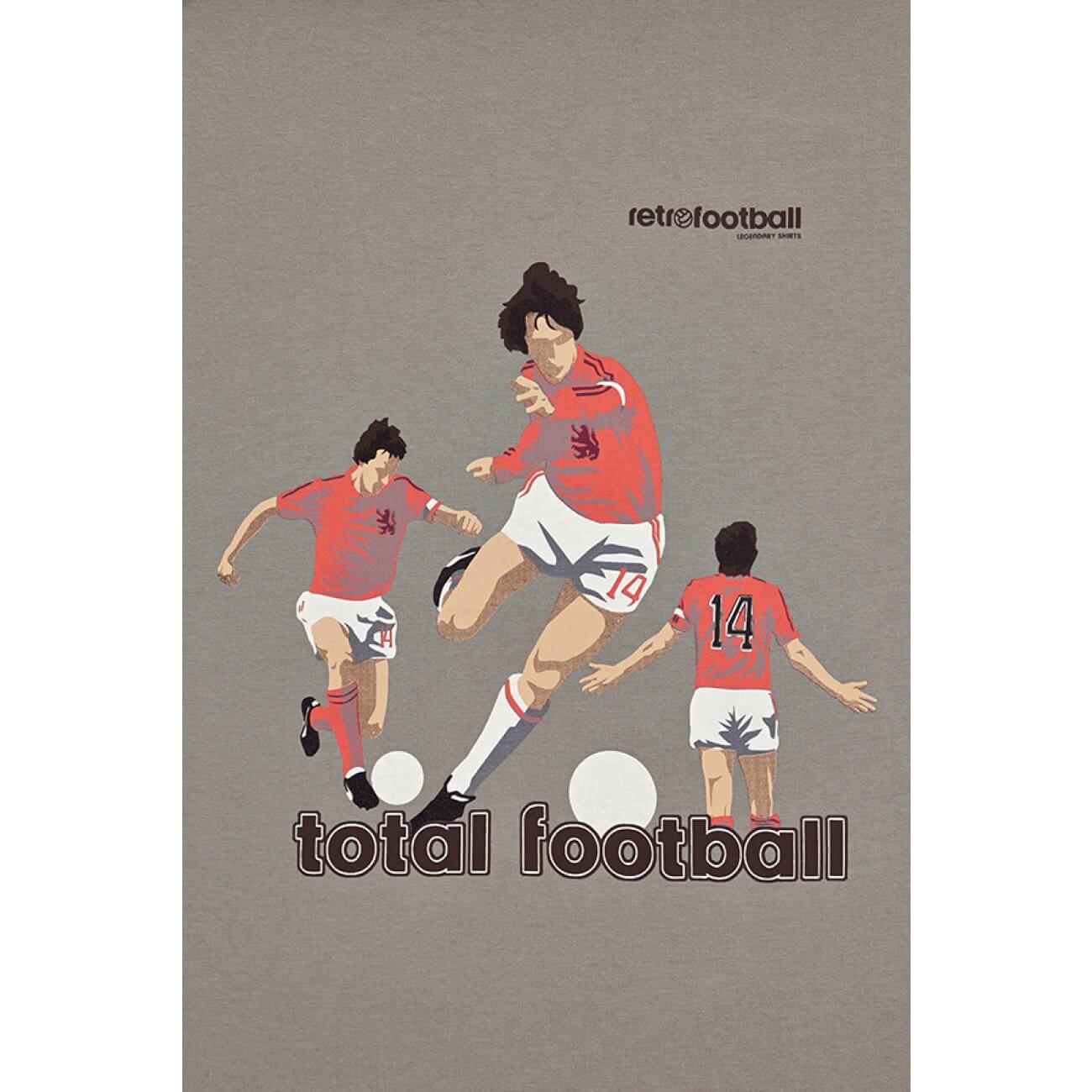 Germany's 1974 World Cup is still remembered for the consolidation of a new style, total football. A fluid football system in which players did not have pre-assigned roles, any player could be a forward, a midfield player or a full back defence. Holland did not won the WC but is still more remembered than the Champions. This T-shirt is a tribute to the Total Football generation and to the one and "only" number 14.