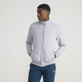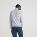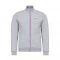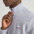 Zipped grey sweatshirt made in Morocco with 300 gr cotton/polyester (double-sided | 85% - 15%). Fabric knitted and dyed in France. Regular fit. Zip with blue and red piping. Coque Logo transferred.