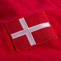 Retro football shirt of Denmark in the 70s. High quality, 100% cotton. Red with the typical danish flag.